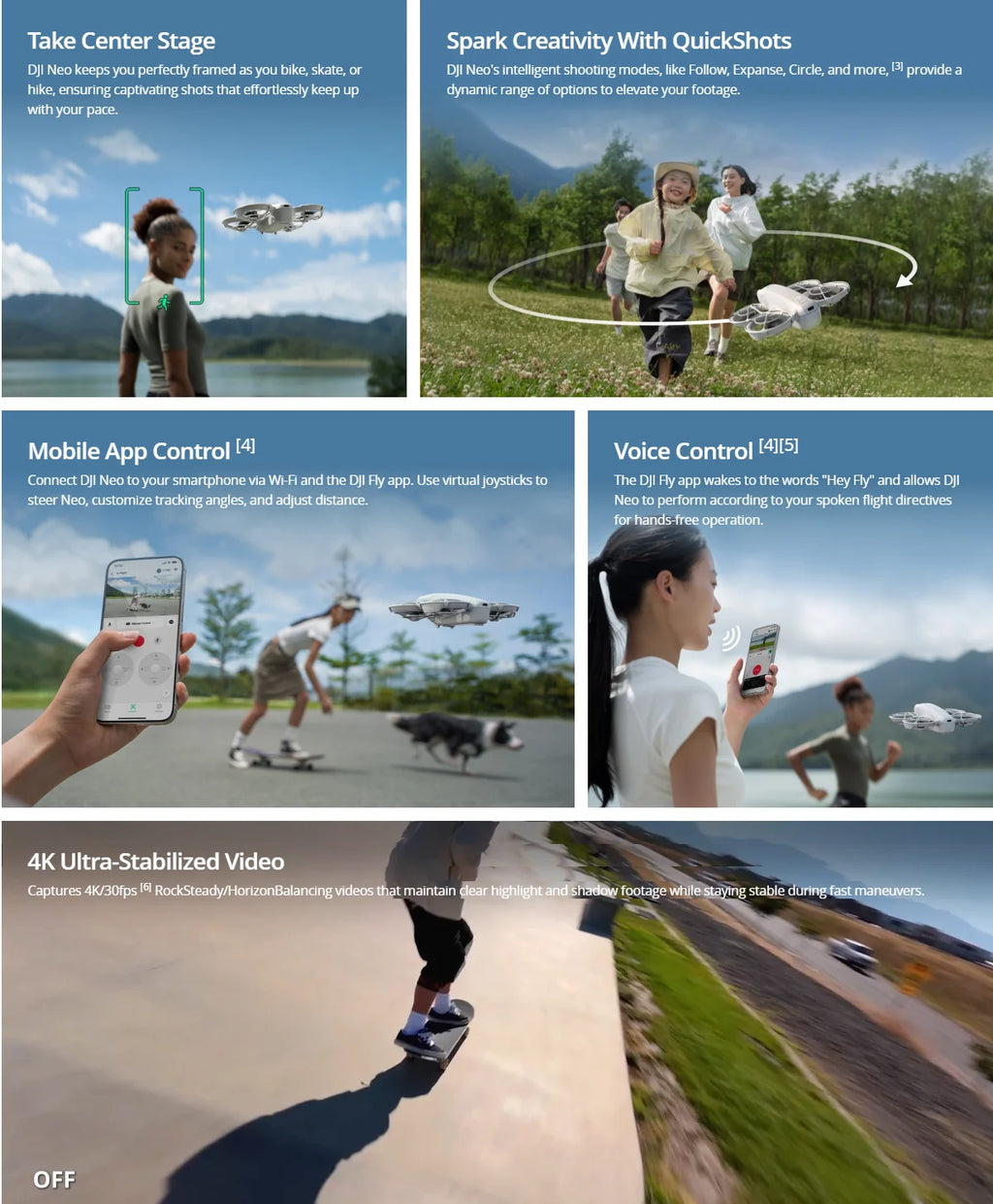 Especificações Técnicas – Drone DJI NEO 4K com Gimbal Estabilizado