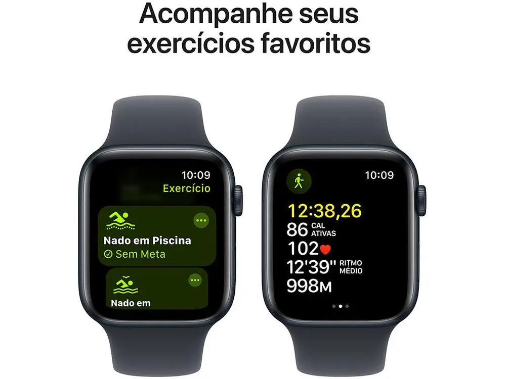 Produto: Apple Watch SE (GPS) – Caixa de Alumínio Midnight 44mm com Pulseira Esportiva Midnight (Tamanho M/L)